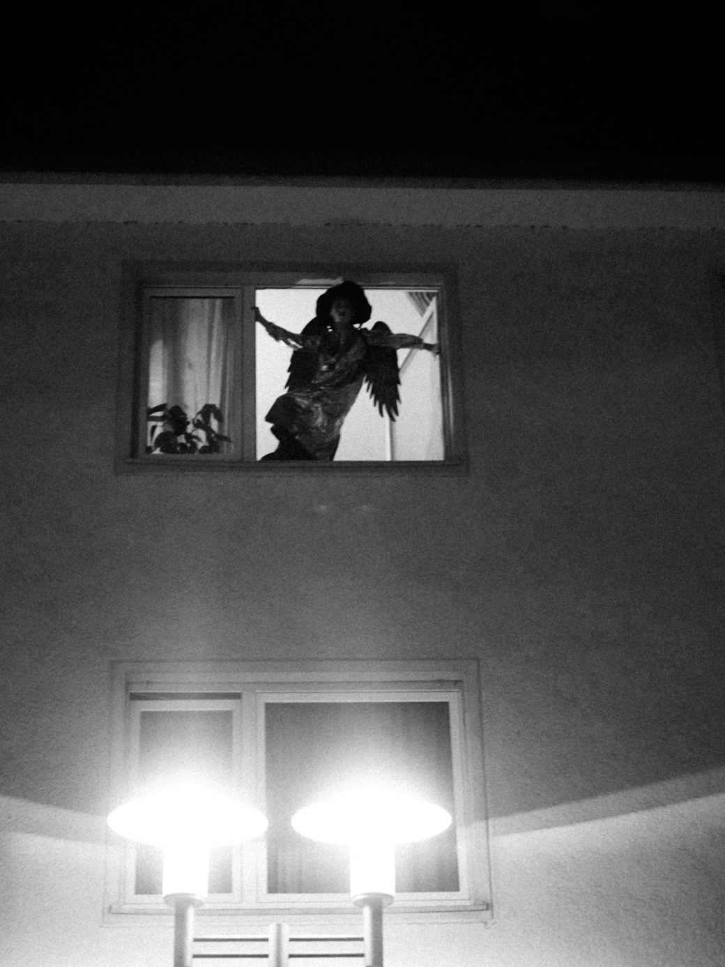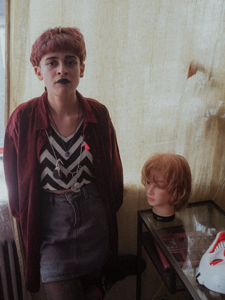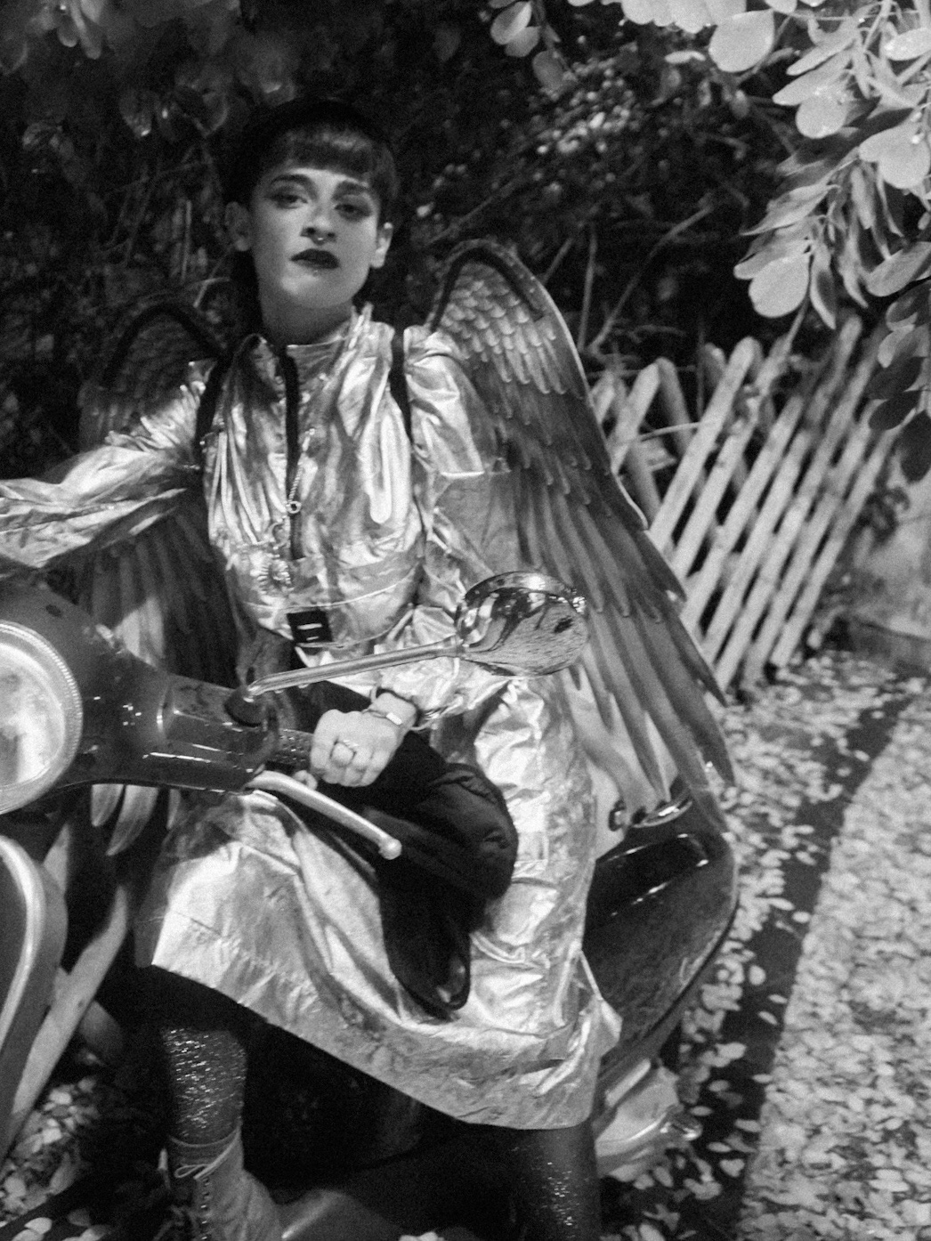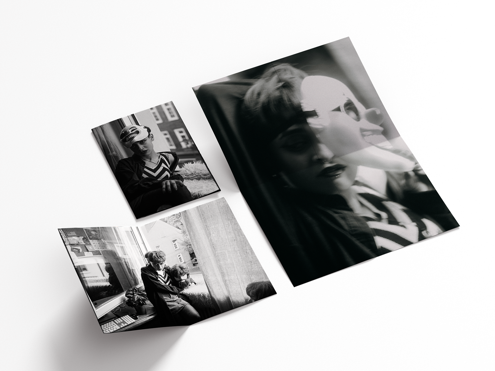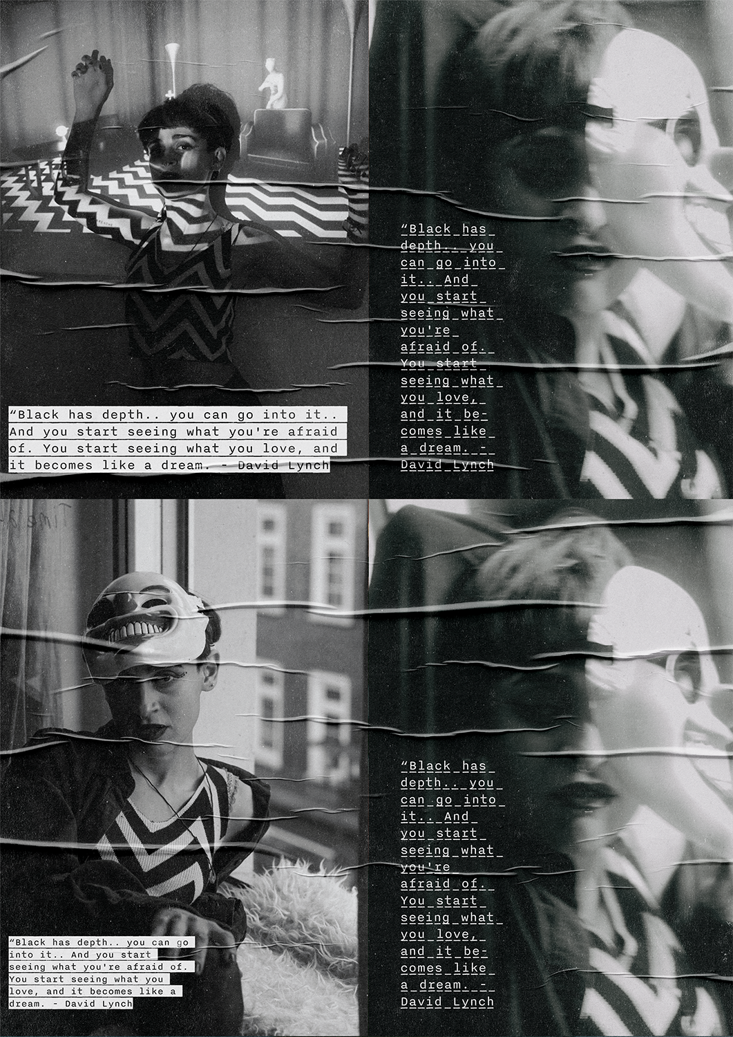 We see the self: patterned by light, hidden by a laugh, and costumed for an escape. The recurring chevron acts as a visual trap—a symbol of the relentless, repeating patterns of thought and anxiety. The masks and costumes, from the surreal clown to the metallic wing, are tools used to expose a deeper, less polished identity beneath the surface. Photography credits: Lia Tee (@lia_tee_images)